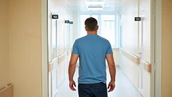 Мужчина идет прямо по коридору наркологической больницы